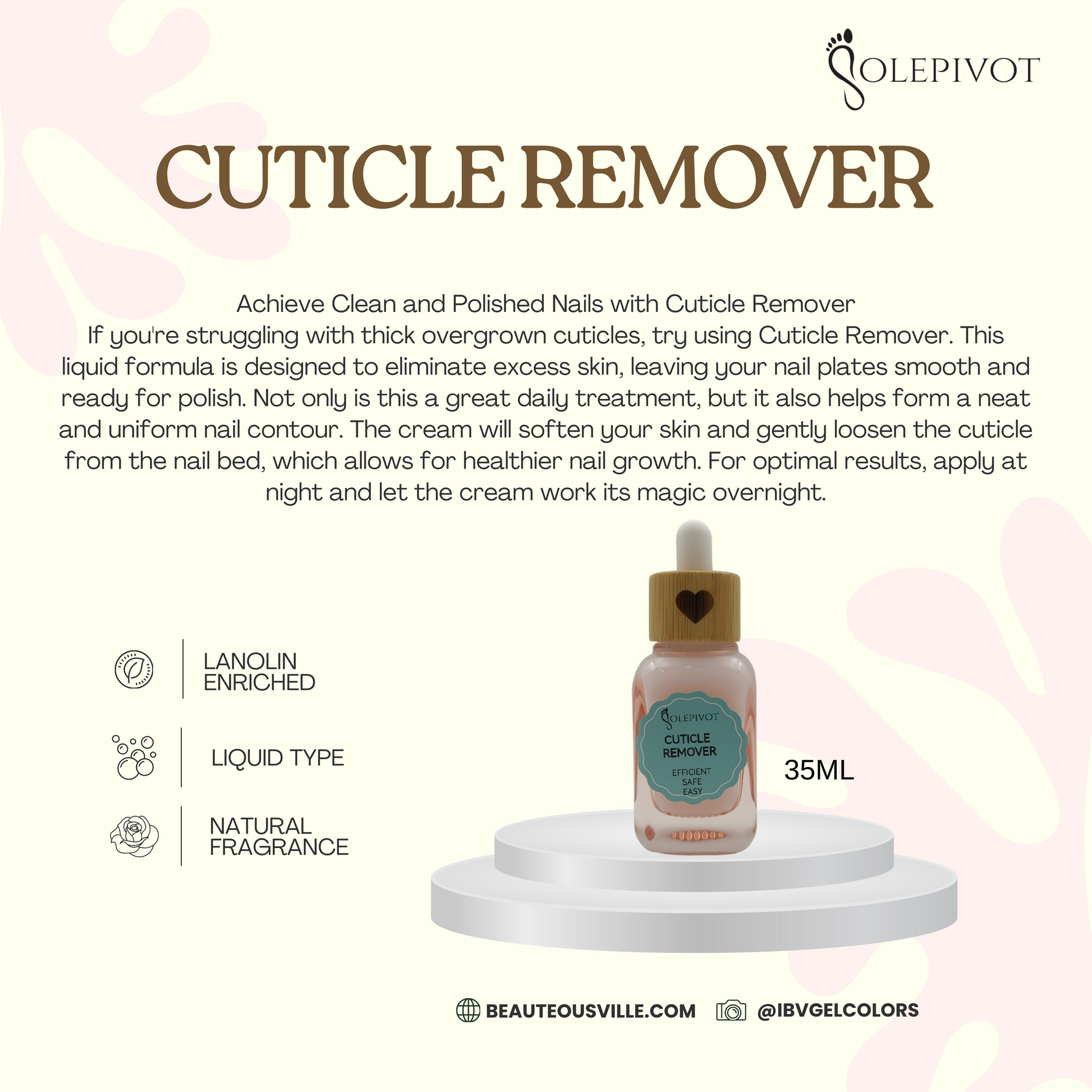 Enhance Nail Appearance with Cuticle Remover If you're dealing with thick overgrown cuticles, consider using Cuticle Remover. Formulated to remove excess skin, this liquid solution leaves nail plates smooth and primed for polish. It's a beneficial daily treatment that also promotes a tidy and consistent nail shape. The cream softens skin and gently releases cuticle from the nail bed, encouraging healthier nail development. To maximize results, apply at bedtime and allow the cream to effectively work overnight.